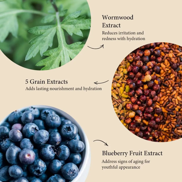 🔸 عصاره افسنطین: مرطوب کننده، تسکین دهنده، دارای اثر ضد باکتری، ضدعفونی کننده، ضدالتهاب، متعادل کننده میزان چربی و آب پوست